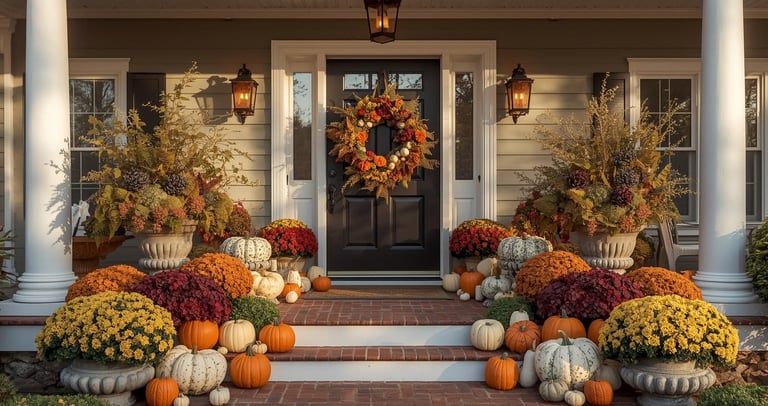 Our signature and most luxurious porch styling option, designed to create a true autumn masterpiece. The Showcase Package transforms your entryway into a warm, welcoming display that celebrates the beauty of the season.