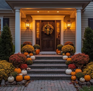 We create beautifully styled entryways for every season, focusing on cozy and classic porch decorations.